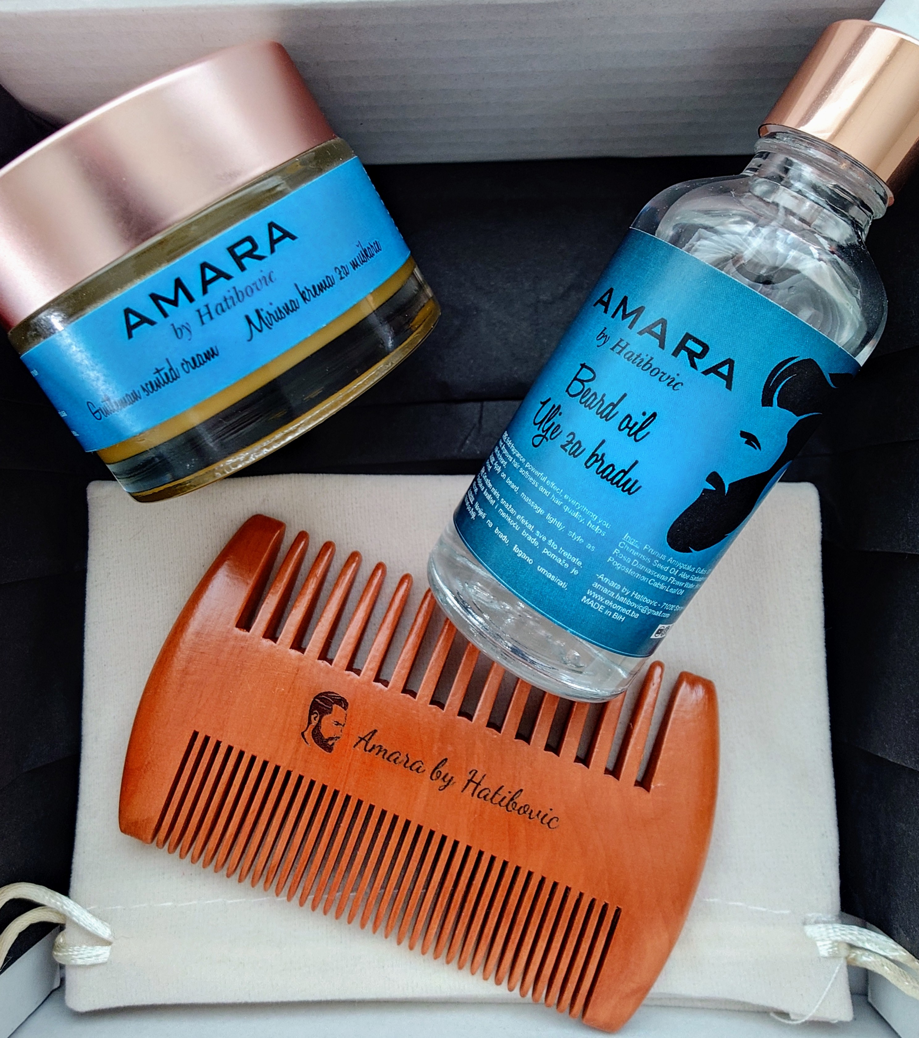 The Men’s Collection – grooming essentials crafted for the modern gentleman. Includes nourishing cream, beard oil, and a premium comb for refined care.